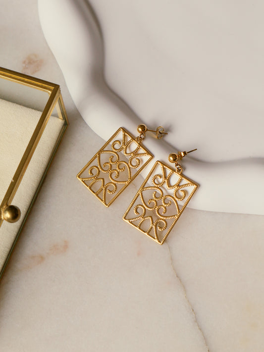 BRINCOS RECTANGULARES COM TRABALHADO
