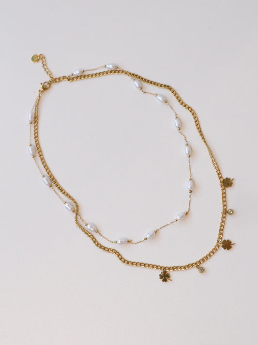 EsgotadoFIO DUPLO TREVO E PÉROLAS