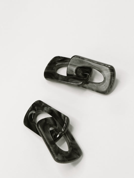 BRINCOS COMPRIDOS EFEITO MÁRMORE CINZA