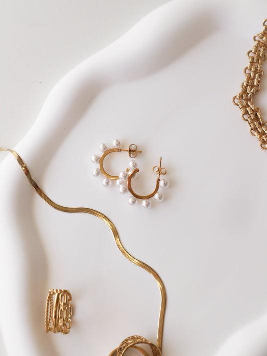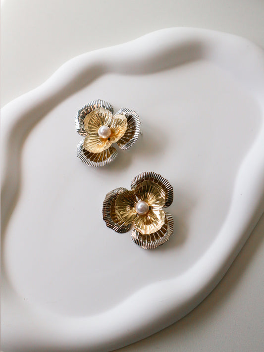BRINCOS FLOR PÉROLA DOURADOS E PRATEADOS