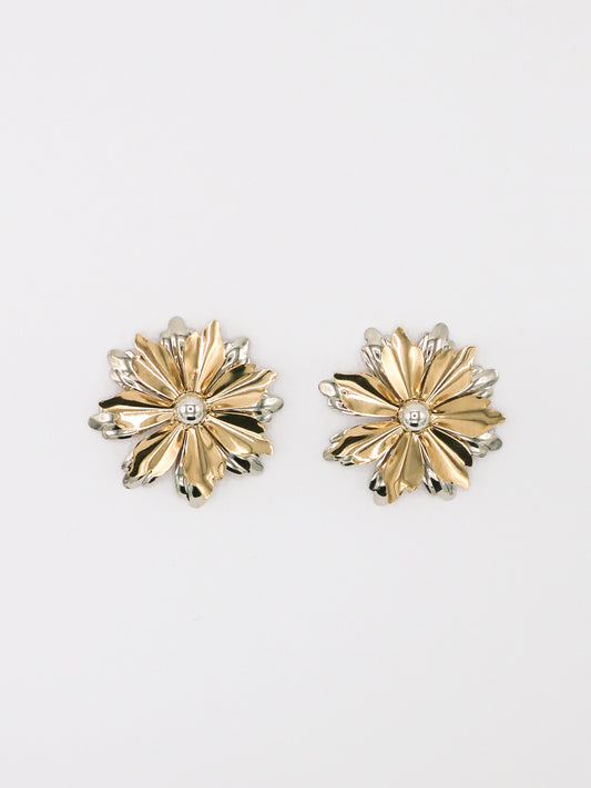 BRINCOS FLOR MAXI DOURADOS E PRATEADOS