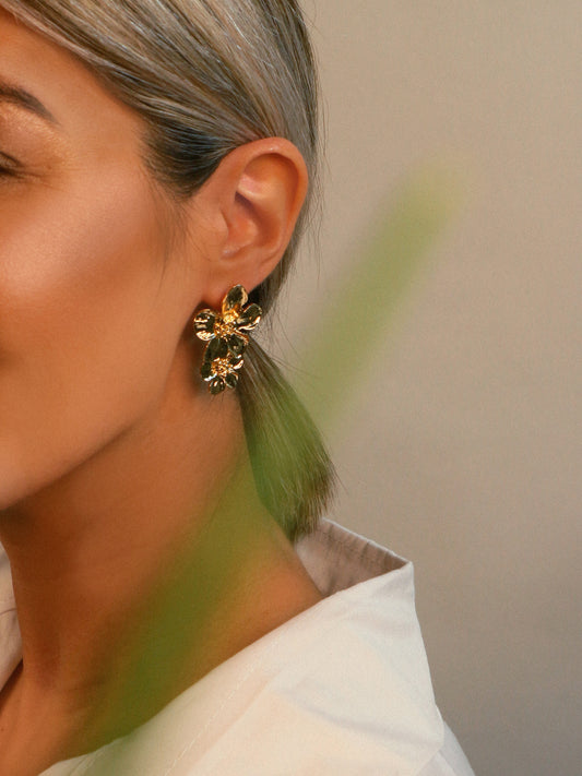 EsgotadoBRINCOS DOURADOS DUAS FLORES