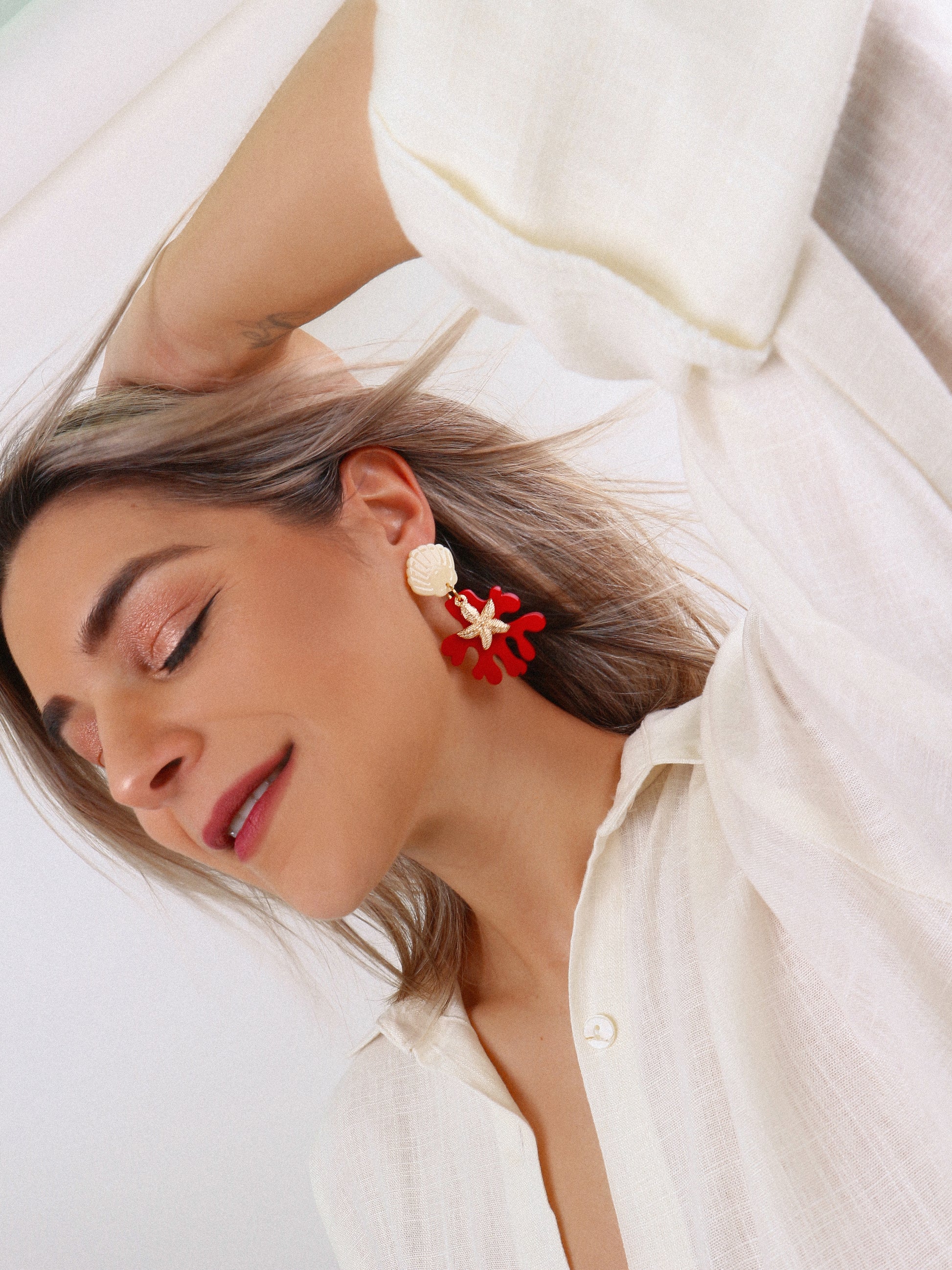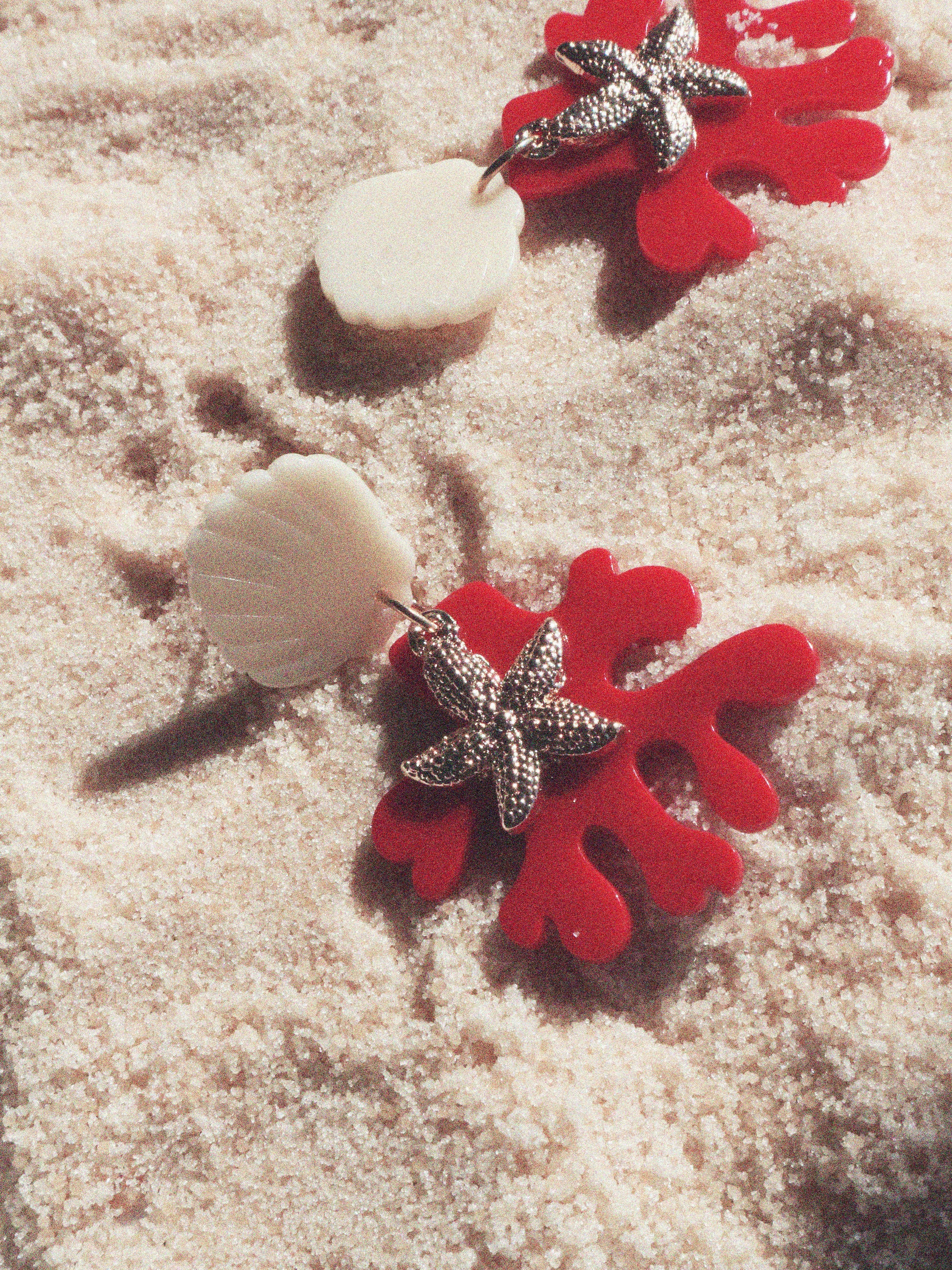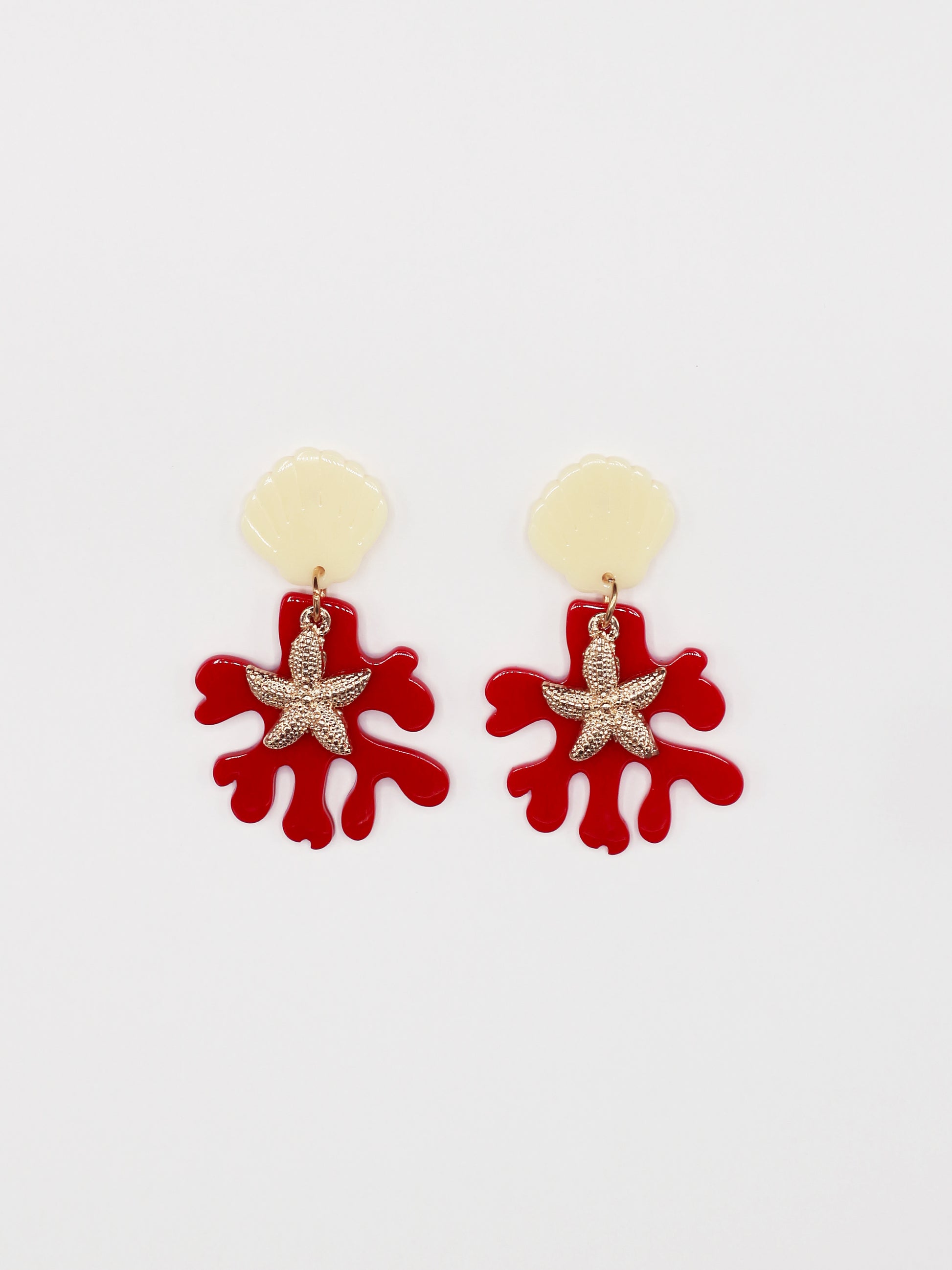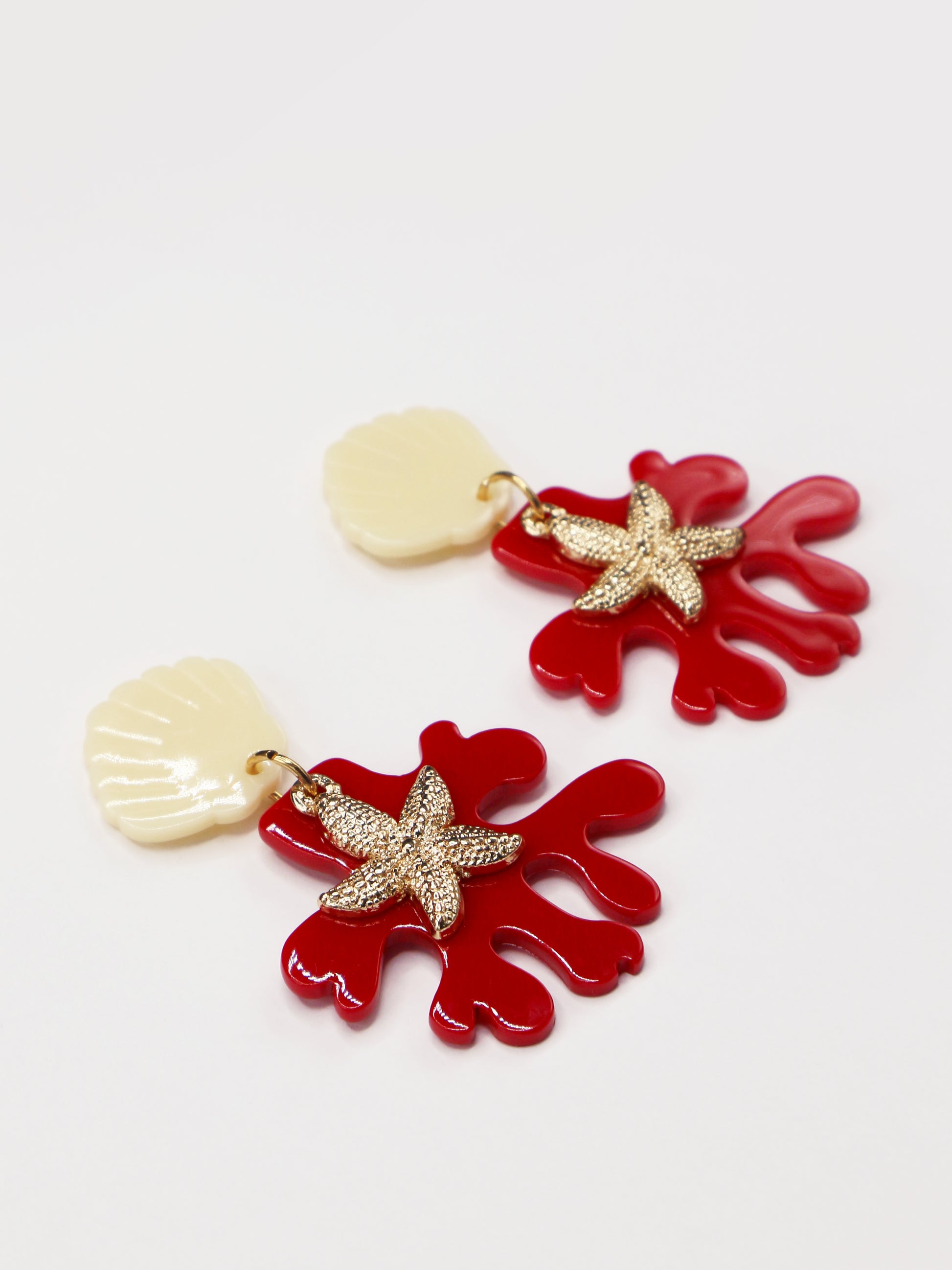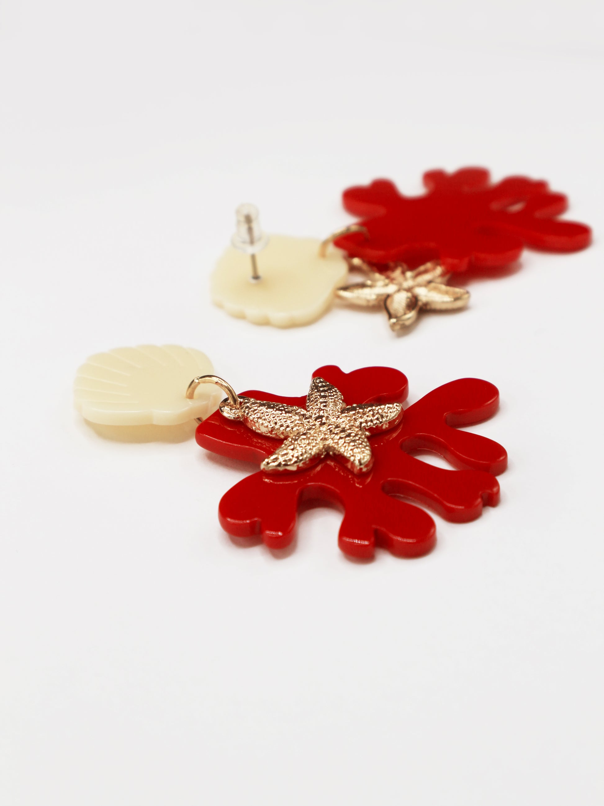 - Material: Acrílico- Cor: Vermelho, bege e dourado