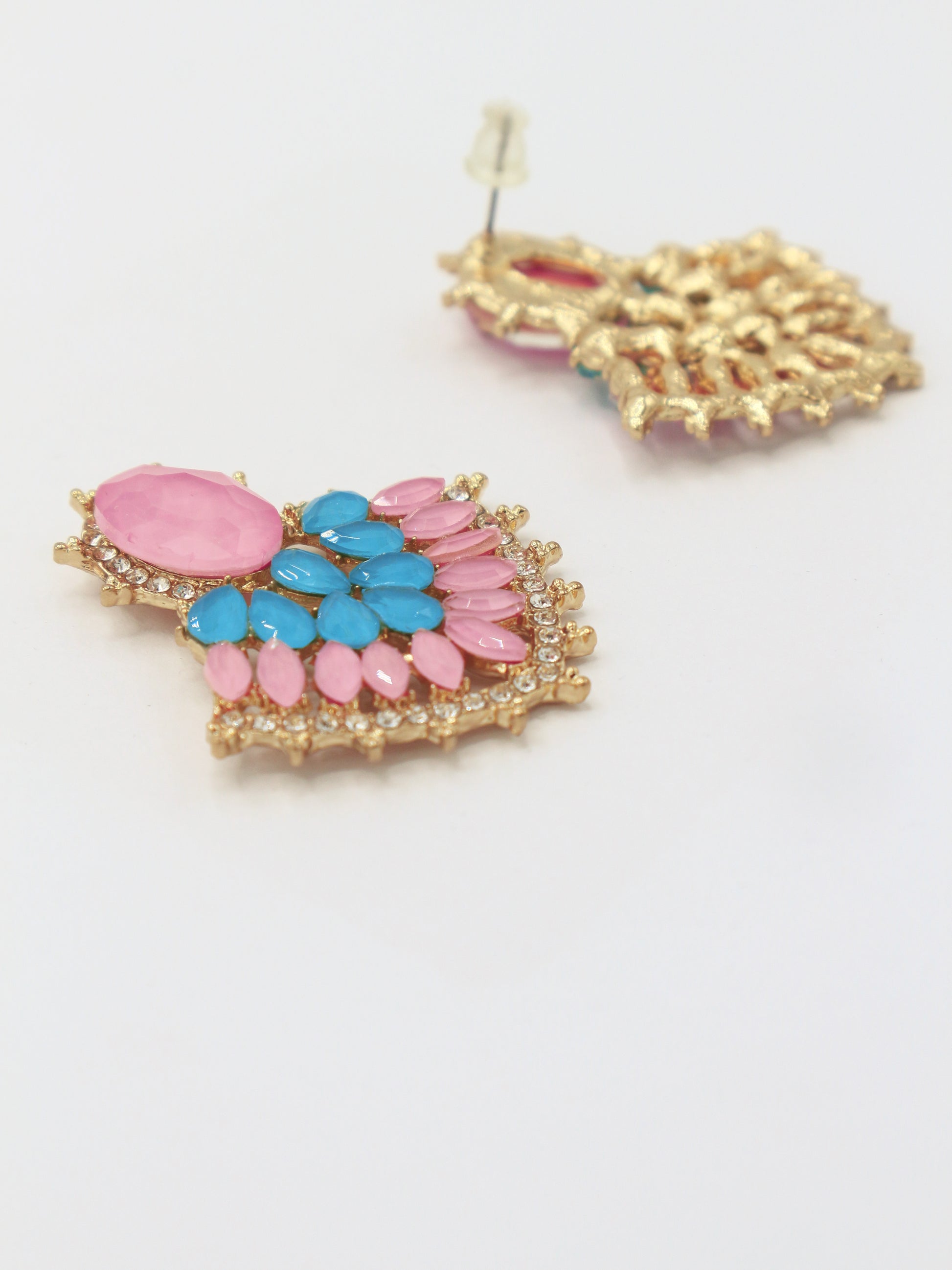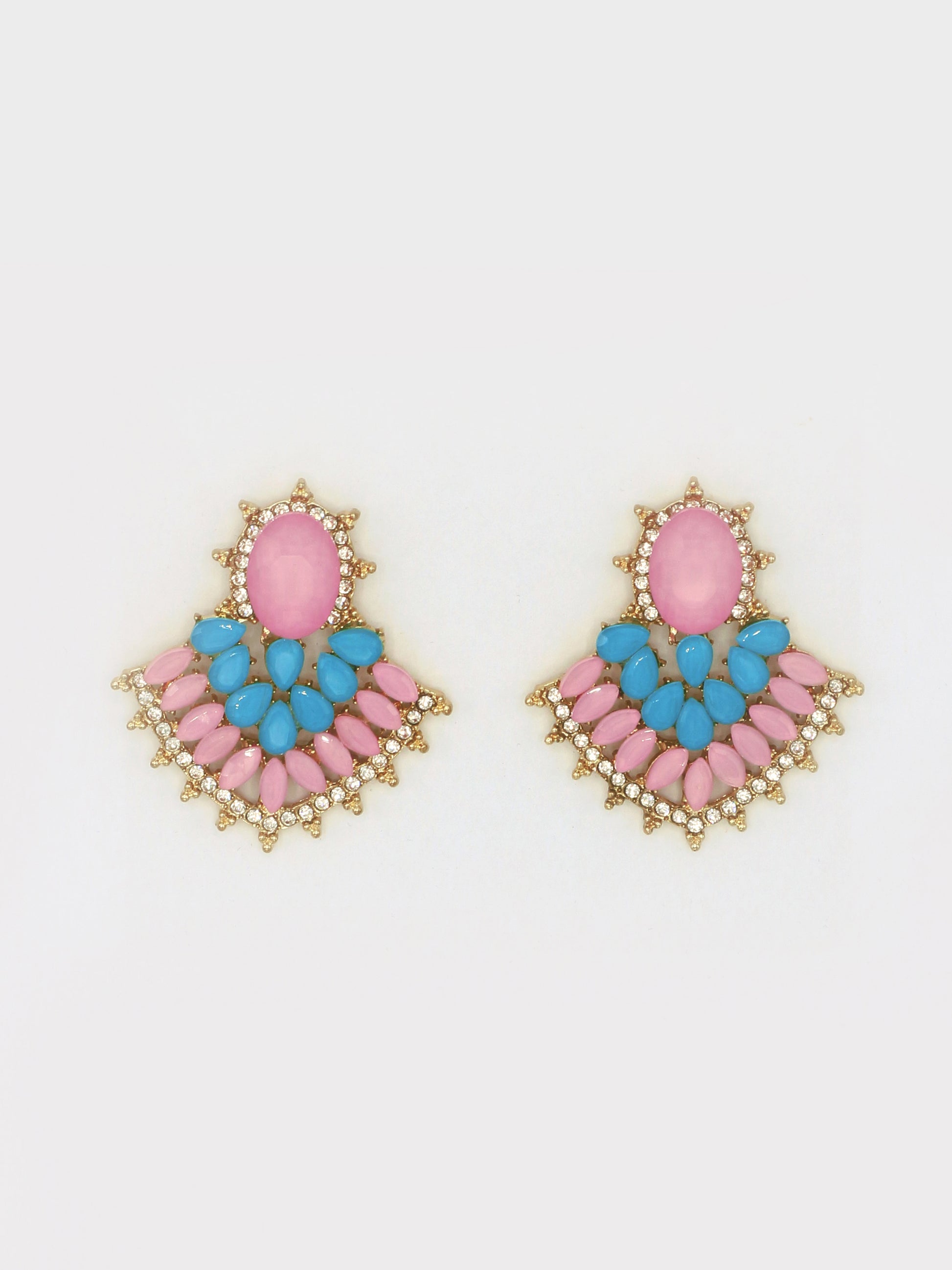 BRINCOS PEDRAS ROSA E AZUL