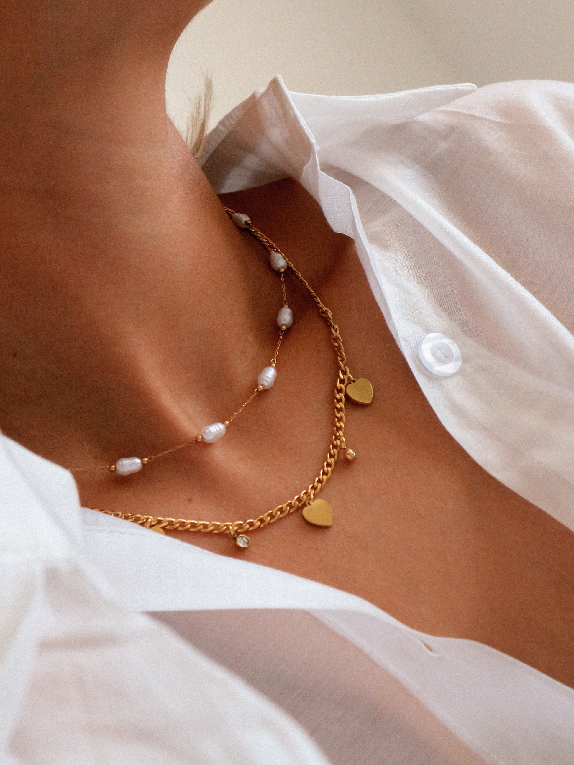 FIO DUPLO CORAÇÕES E PÉROLAS